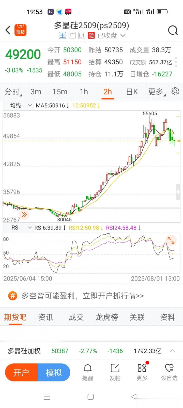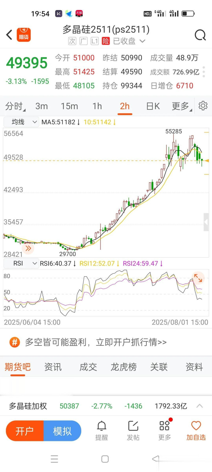 多晶硅2509上一交易日多头主力资金减仓10241,多仓位总量增减-13939; 空头主力资金11678,空仓位总量增减-12867.